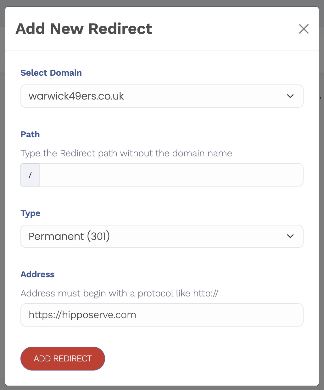 Kur të gjitha detajet janë të sakta, klikoni Add Redirect.