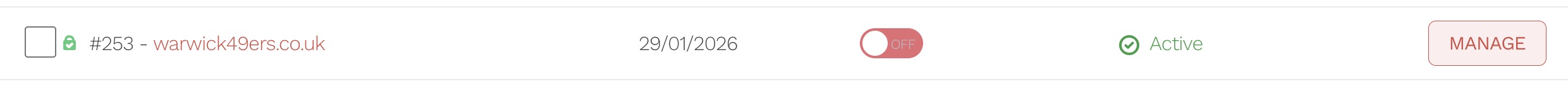 - Locate the domain you want to manage.