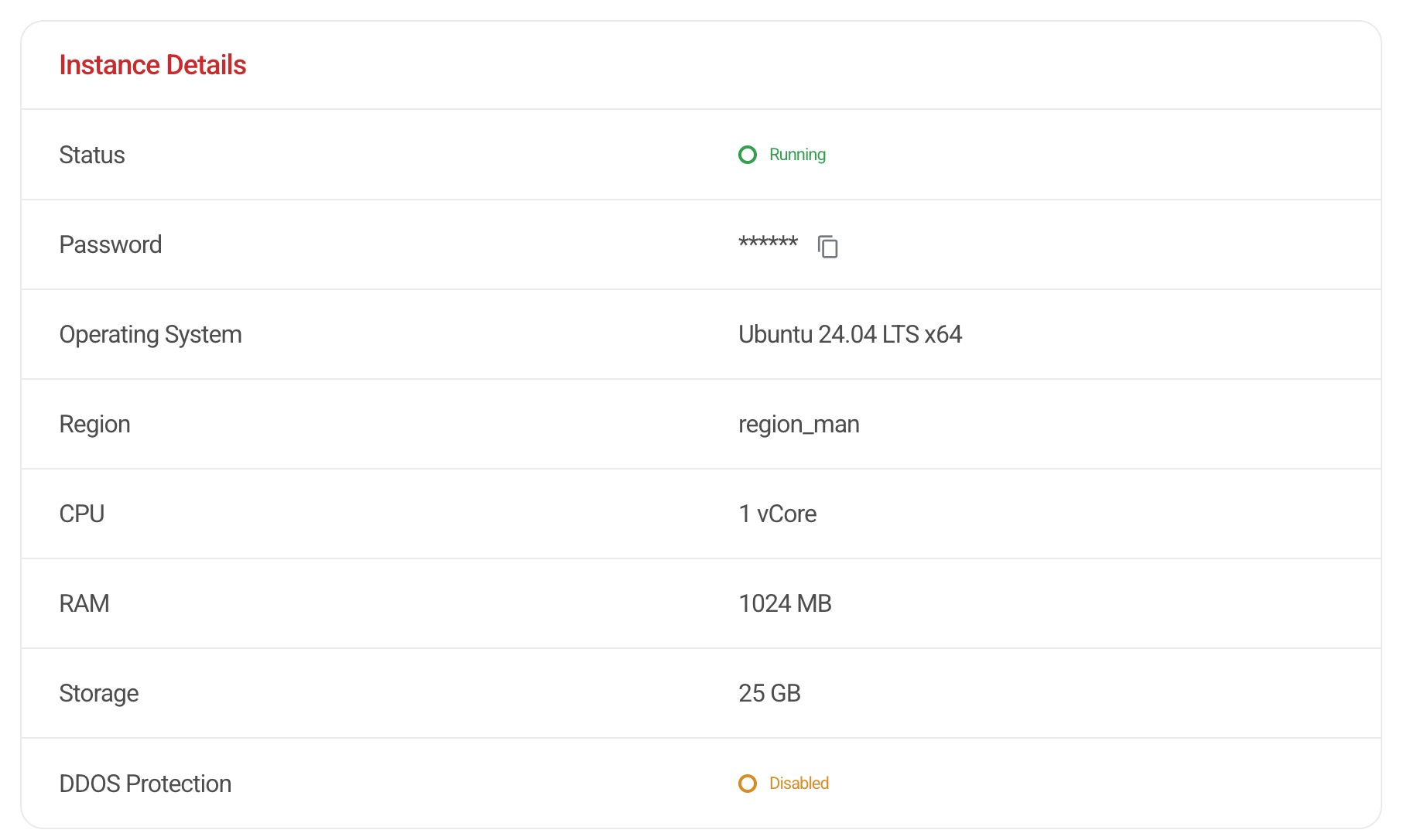 Pasi të hyni në vPanel, lëvizni poshtë deri te seksioni Detajet e Instancës.