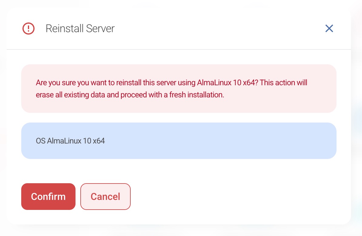 Warning: Installing or reinstalling a new operating system or application image will completely erase all existing data on your VPS instance.